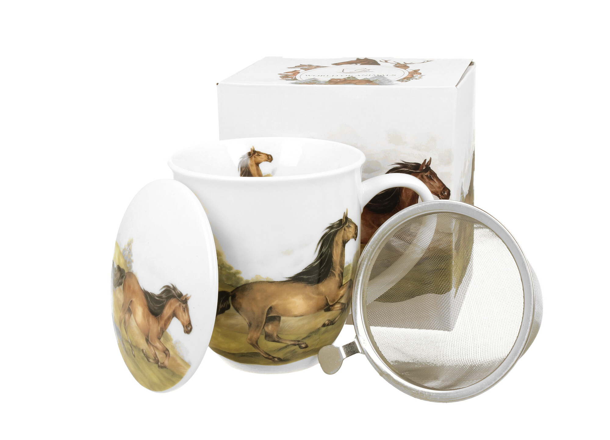Kubek z zaparzaczem Świat Zwierząt KOŃ GNIADY wchodzący w skład serii Animals, wykonany z porcelany New Bone China, charakteryzującej się naturalnym kremowo-białym kolorem z delikatnym połyskiem oraz wyjątkową wytrzymałością i trwałością, zachowując lekkość i finezję. Doskonały do przyrządzania...