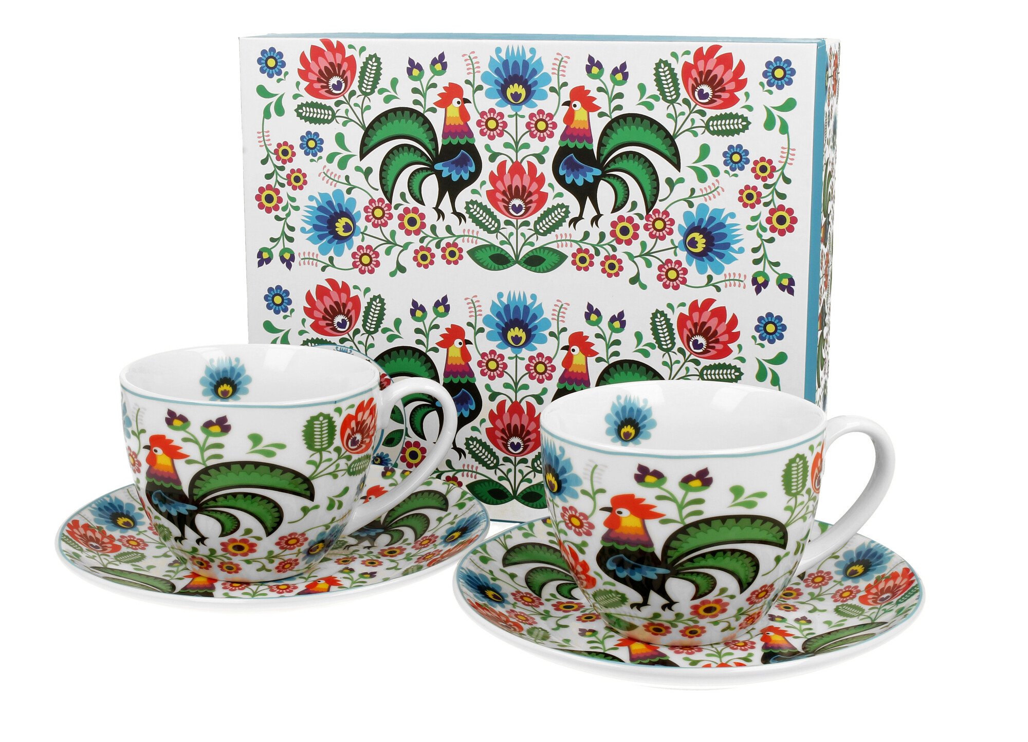 Komplet dwóch filiżanek ze spodkami KOGUTY FOLK wchodząca w skład serii ETNO, wykonana z porcelany New Bone China, która charakteryzuje się naturalnym kremowo-białym kolorem z delikatnym połyskiem oraz wyjątkową wytrzymałością i trwałością, zachowując lekkość i finezję. Linia charakteryzuje się...