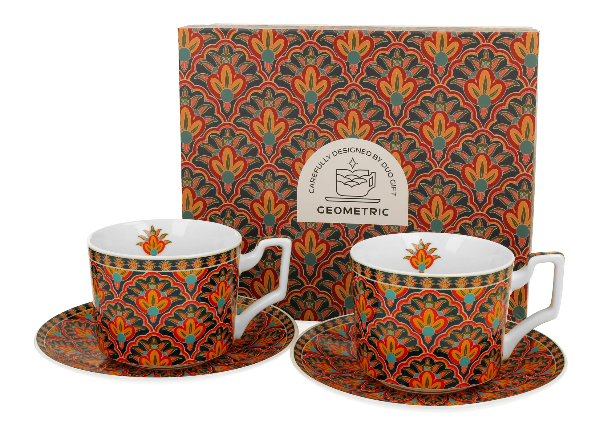 Komplet dwóch filiżanek ze spodkami FESTUM wchodząca w skład serii GEOMETRIC, wykonany z porcelany New Bone China, charakteryzującej się elegancką i naturalną kremowo - białą barwą z delikatnym połyskiem, a także wyjątkową wytrzymałością.Linia zdobiona motywem mozaikowych kwiatów ułożonych...