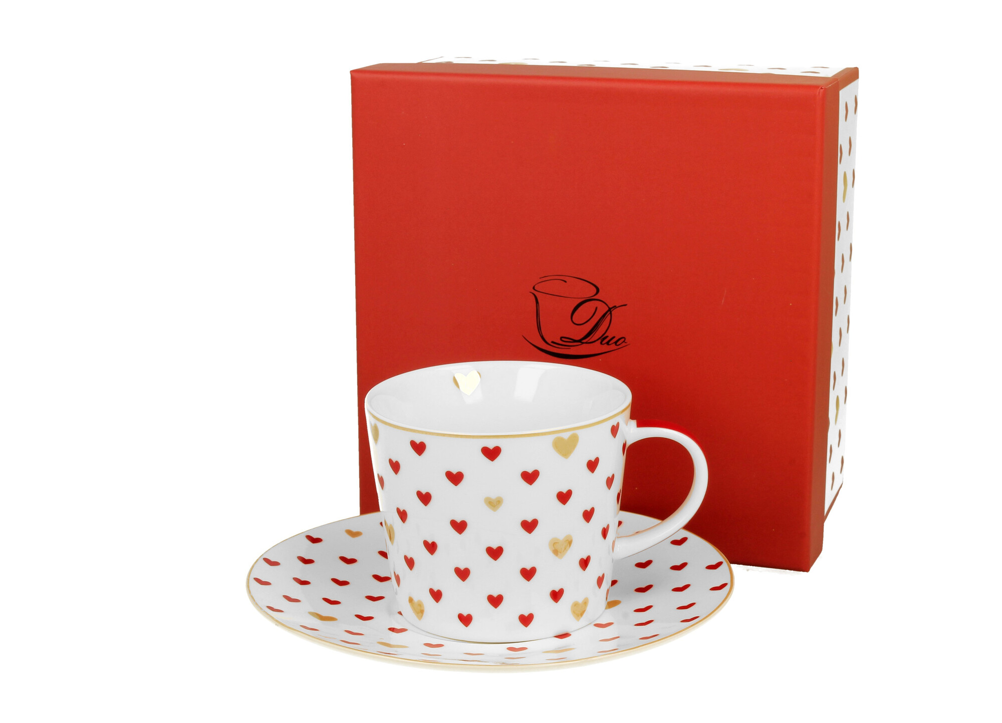 Filiżanka ze spodkiem CZERWONE SERDUSZKA