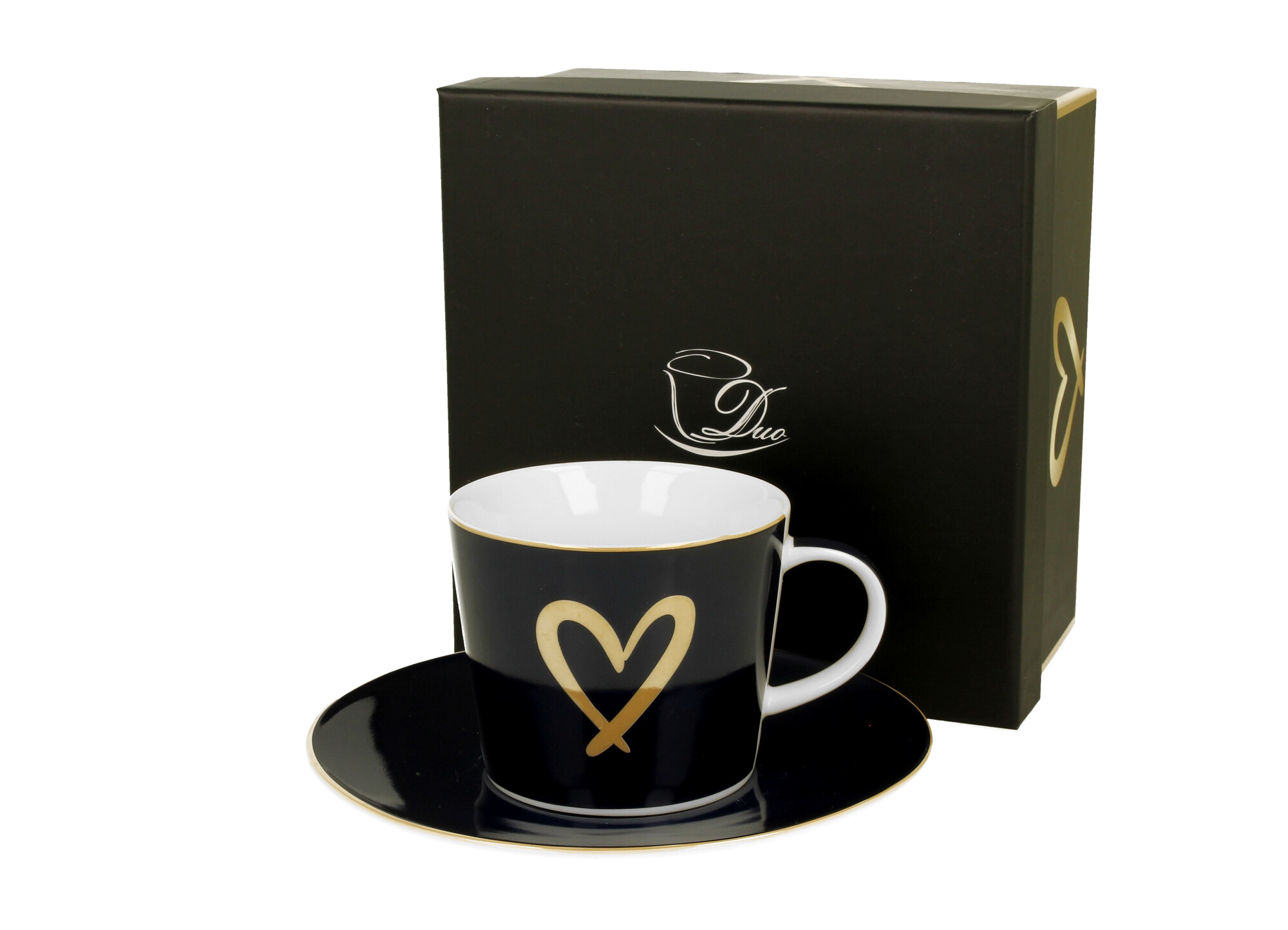 Filiżanka ze spodkiem Granatowa - ZŁOTE SERDUSZKO