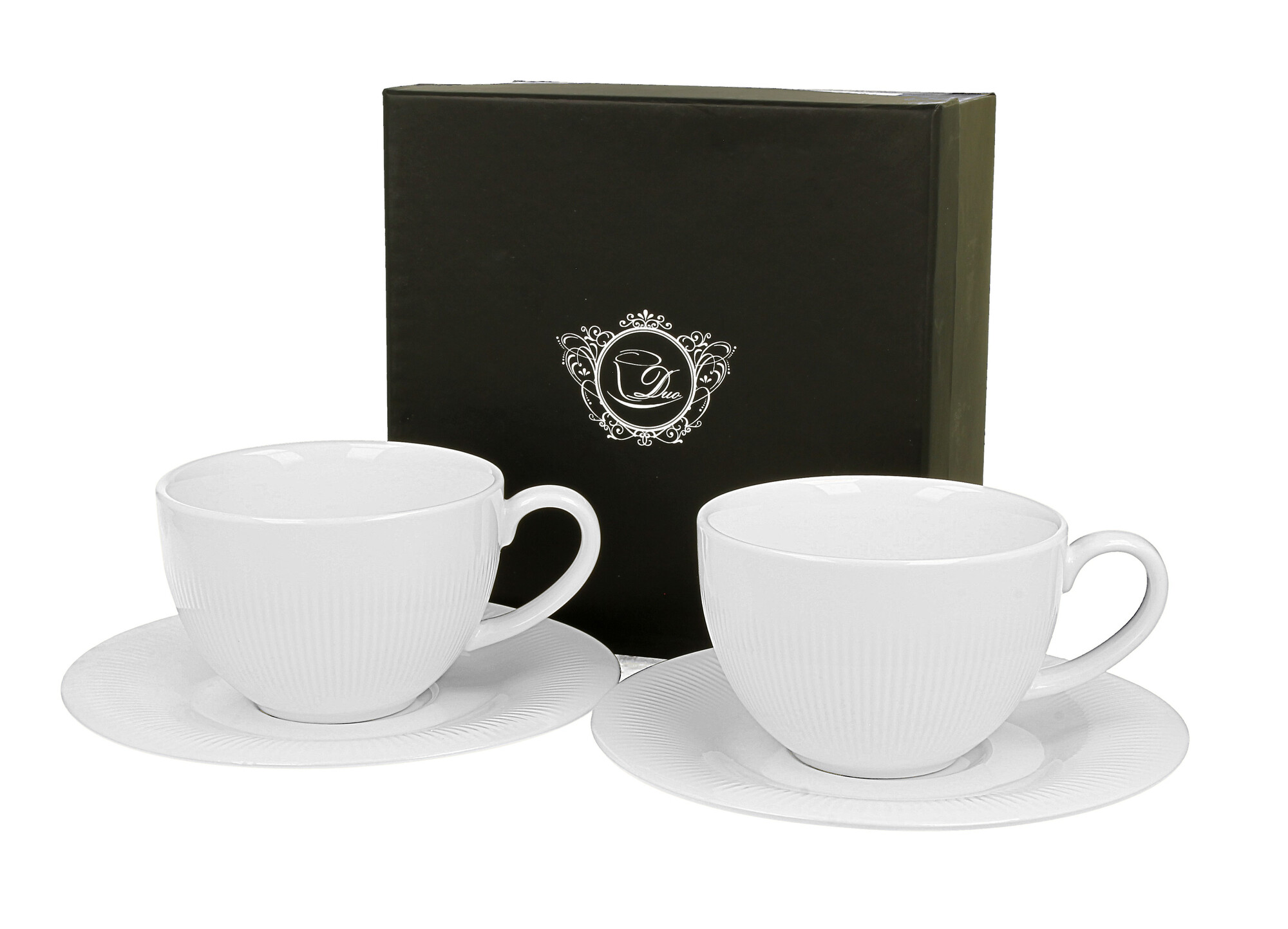 Komplet 2 filiżanek ze spodkami RAPHAEL wchodzący w skład kolekcji BIAŁEJ. Zastawa stołowa wykonana z wysokiej jakości wzmocnionej porcelany Durable w kolorze białym z delikatnym połyskiem, wyróżniająca się wyjątkową wytrzymałością.Klasyczny okrągły kształt zdobiony delikatnie tłoczonymi...