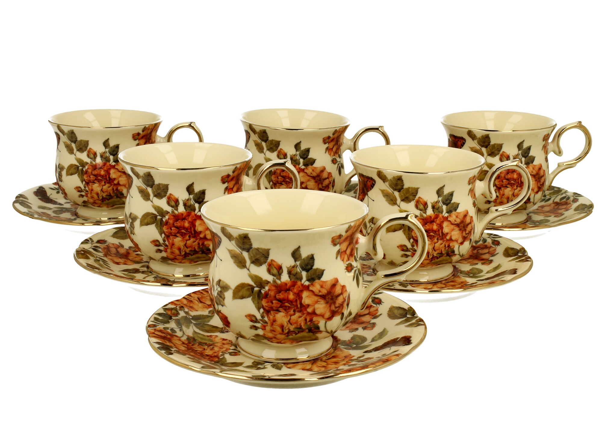 Komplet sześciu filiżanek w kształcie baryłki HERBAL ROSES wchodzący w skład kolekcji ECRU. Wykonany z najwyższej jakości porcelany w kolorze ecru wykończonej złotymi zdobieniami oraz motywem różanego krzewu w wyrazistych ale jednocześnie ciepłych barwach. Soczyste kolory doskonale harmonizują ze śmietankową barwą porcelany nadając jej luksusowego wykończenia.