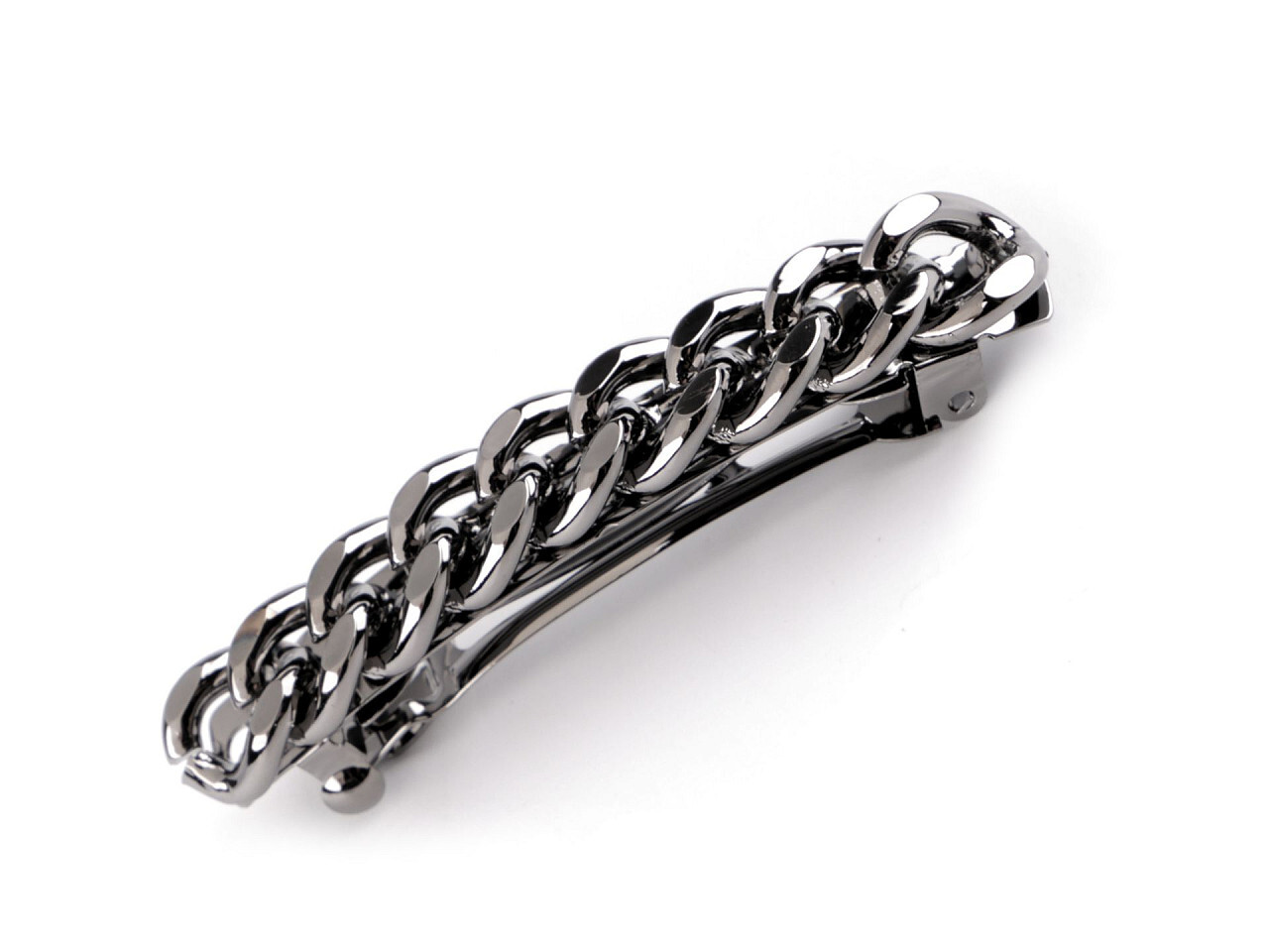 Francouzská spona do vlasů řetěz - 1 ks - 3 šedá ocelová