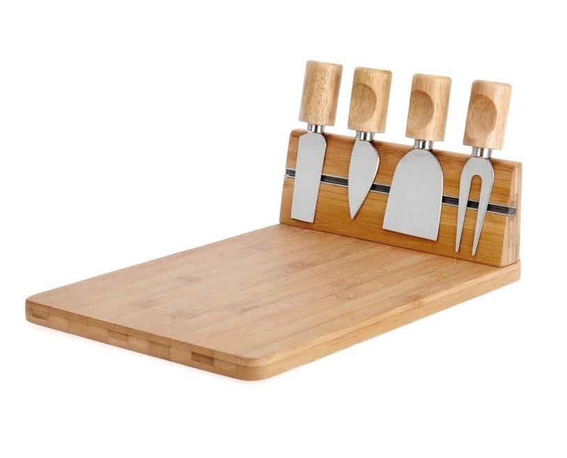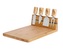 Materiał: bambusRozmiary: 300x200x15 mmCałkowita wysokość ze stojakiem: 85 mmWyposażenie: Mocny magnes do mocowania nożyNoże: 4 szt., stal nierdzewna
