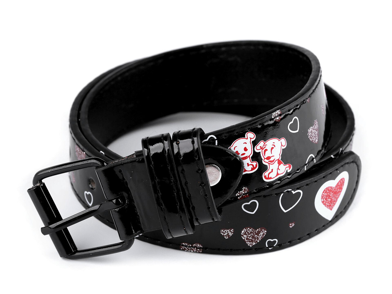 Dívčí pásek v klasickém provedení s kovovou sponou se hodí k jakémukoliv oblečení. Má hladký povrch s leskem, dívky si jej zamilují díky potisku pejsků a srdcí ozdobených jemnými glitry. Pásek se dá zkrátit na potřebnou délku díky šroubku, který je umístěný za sponou. przeczytaj całość