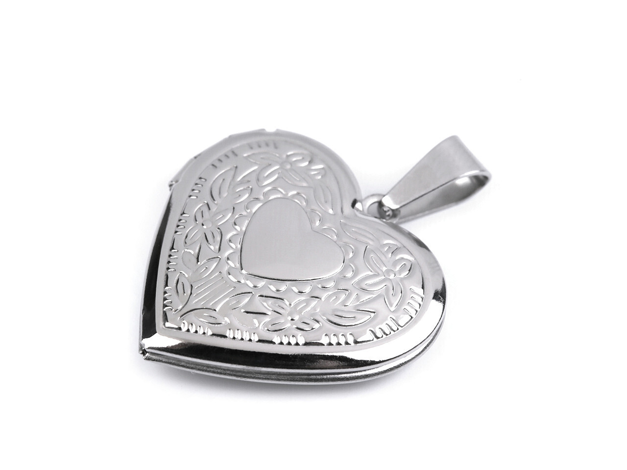 Medailonek z chirurgické oceli srdce otevírací Ø29 mm - 1 ks - 2 platina ornament