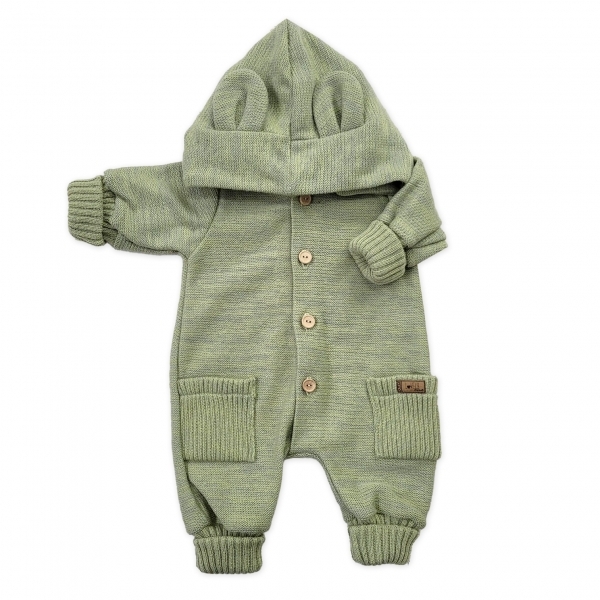 Dětský pletený overálek s odepínací kapucí - olivový, 68/74; 68/74 (6-9m)