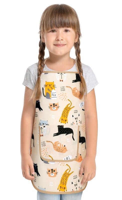 Dětská zástěrka - Kočičky béžová, žllutá, šedá - 37 x 47 cm, pro děti ve věku 3 - 5 let