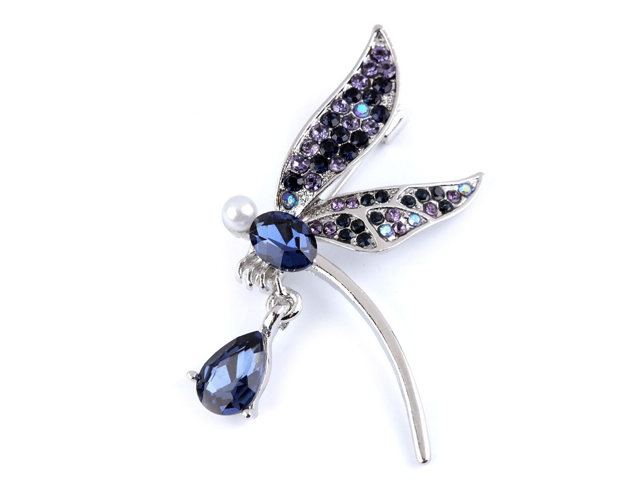 Brož s broušenými kamínky vážka - 1 ks - 15 modrá