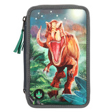 Penál 3 patra s výbavou Dino World, T-Rex v noci, se světelným efektem