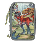 Penál 3 patra s výbavou Dino World, Šalvějově zelený, motiv T-Rexe