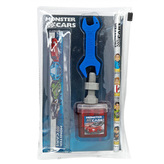 Psací set Monster Cars 5 ks, tužka, pravítko, 2 x guma, ořezávátko