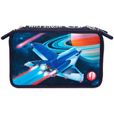 Penál s výbavou a světelným efektem Monster Cars, Modrý, s raketoplánem, světelný efekt