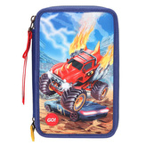 Penál, 3 patra s výbavou Monster Cars, Modrý, se svštelným efektem