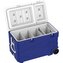 Dzięki mocnej izolacji poliuretanowej box potrafi utrzymać chłód do 32 godzin bez użycia wkładów chłodzących, a lód pozostaje zamrożony nawet przez 6 dni. Praktyczna, dzielona pokrywa (w proporcji 2:1) z uchwytami na napoje zwiększa wygodę użytkowania, a wewnętrzna przegroda ułatwia organizację zawartości. Obsługę boxu znacznie ułatwiają solidne uchwyty, kółka i wysuwany uchwyt, dzięki czemu łatwo go przemieścisz nawet gdy jest w pełni załadowany.