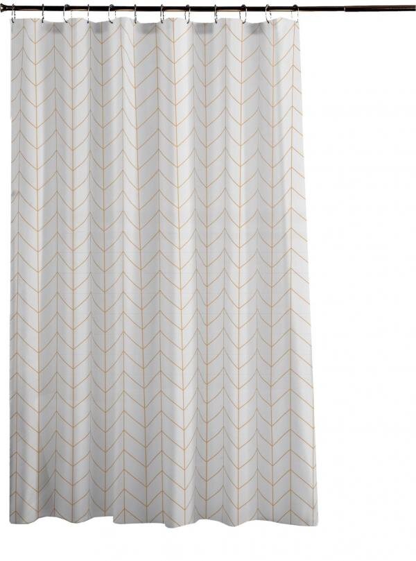 Zasłona wykonana jest z lekkiego i wodoodpornego materiału, który łatwo się czyści i jest odporny na pleśń, co zapewnia długotrwałą czystość i higienę łazienki. Jej wymiar 180x200 cm zapewnia wystarczającą przestrzeń i ochronę przed wodą podczas brania prysznica lub kąpieli. Dzięki wzorowi w eleganckim złotym odcieniu zasłona staje się także elementem dekoracyjnym łazienki, który wygląda luksusowo i nowocześnie.