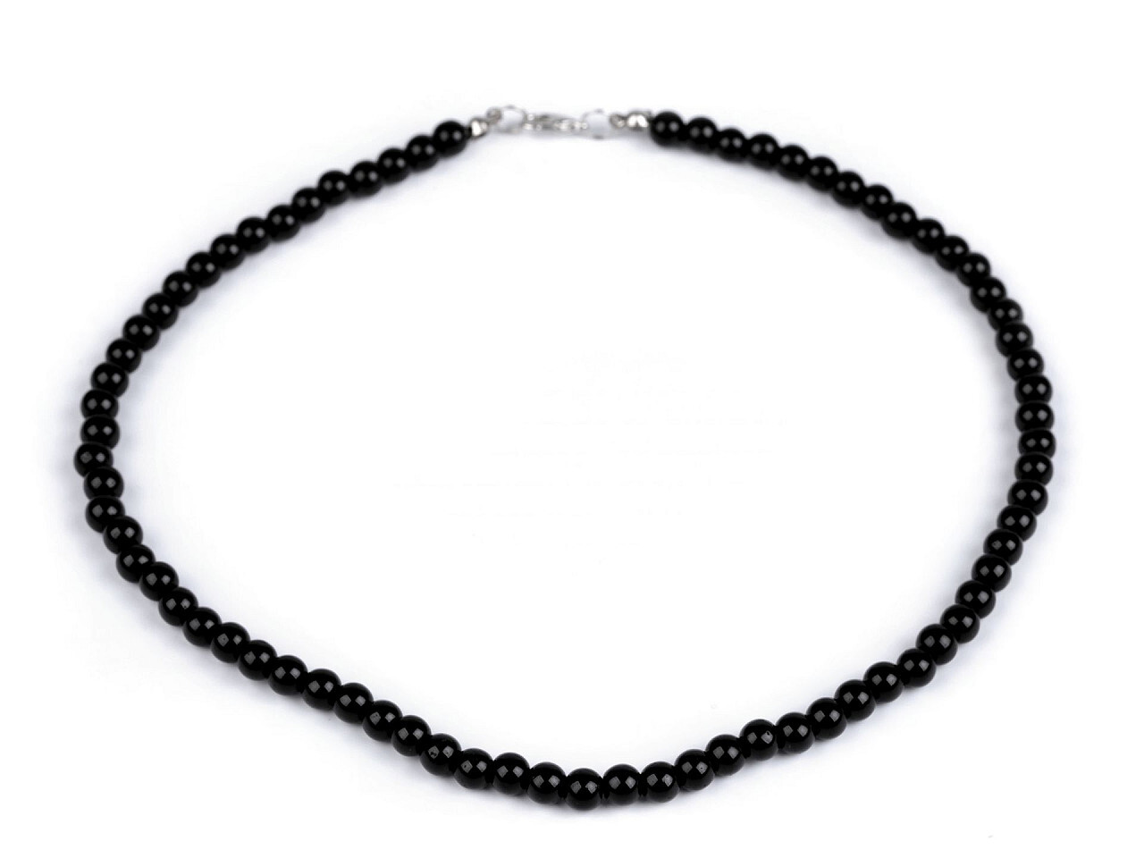 Delikatny naszyjnik perłowy jest bardzo elegancki. Zachwyci każdą kobietę, to prezent, przy którym nie popełnisz błędu. Nadaje się na uroczyste okazje, takie jak bale, śluby, wyjścia do teatru i różne przyjęcia. Perły woskowe bardzo wiernie naśladują perły naturalne, to niedroga opcja. Naszyjnik zapinany jest na karabińczyk. Naszyjnik nr 6 - czarny, bez perłowego połysku.