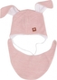 Z&Z Dvouvrstvá pletená čepice na zavazování s šátkem 2v1, Zajíček - růžová; 56 (1-2m)