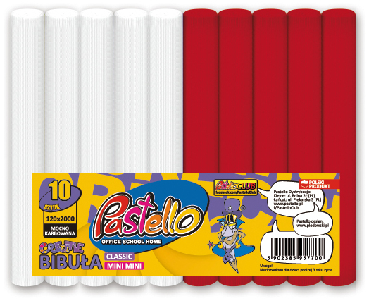 Bibuła mini mini biało-czerwona op. 10szt.,12 cm x 200 cm, Pastello