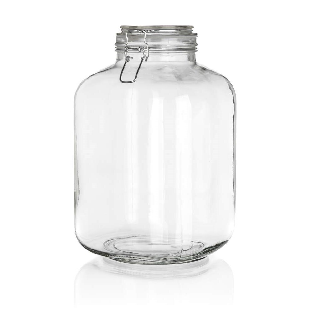 Szklany słoik EREA o pojemności 5 litrów to idealne rozwiązanie do bezpiecznego i praktycznego przechowywania suchych produktów spożywczych oraz do marynowania. Dzięki szklanemu wieczku z metalowym zatrzaskiem i silikonową uszczelką Twoje produkty pozostaną świeże przez długi czas.