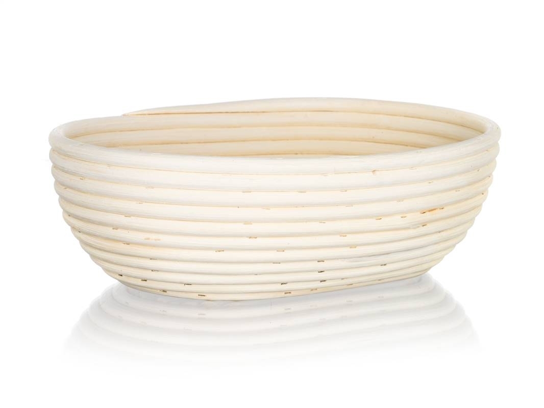 Owalny koszyk z naturalnego pedigu o wymiarach 28 x 22 x 9 cm przeznaczony jest do wyrastania chleba. Po użyciu zaleca się pielęgnować go jedynie wilgotną ściereczką. przeczytaj całość