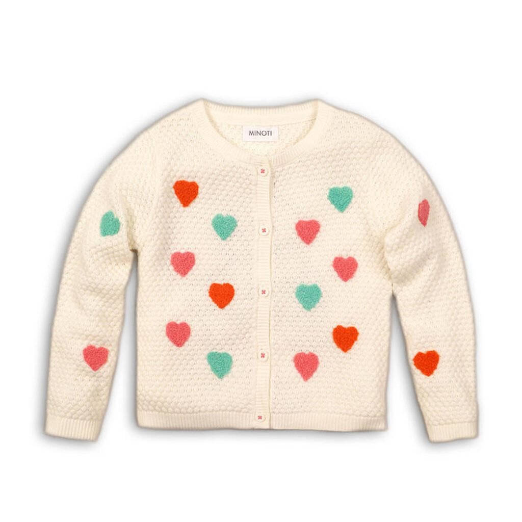 Svetr dívčí celopropínací, Minoti, UNICORN 9, bílá - 104/110