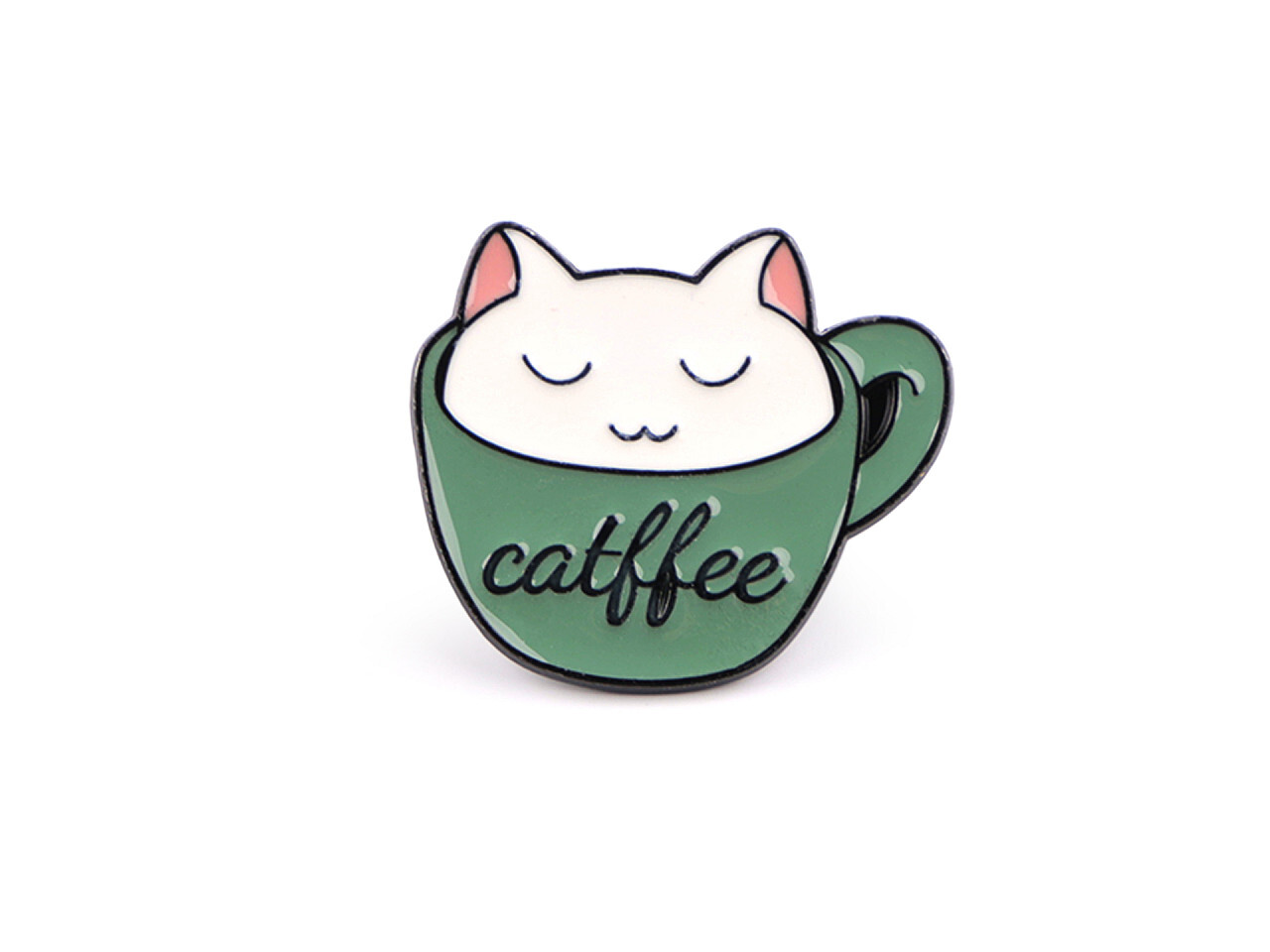 Brož / odznak kočka - 1 ks - 3 zelená ledově