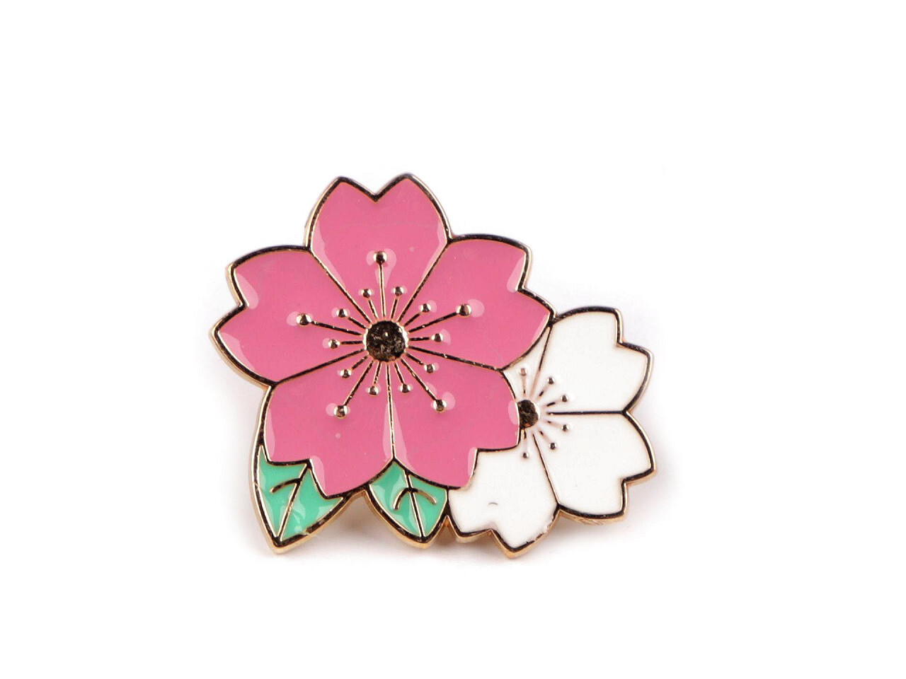 Brož / odznak květ, čtyřlístek - 1 ks - 1 růžová květy