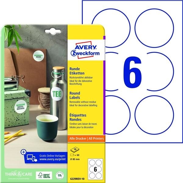 Snímatelné kulaté etikety Avery Zweckform bílé barvy jsou ideální pro jakékoliv krátkodobé označování výrobků a propagačních předmětů;