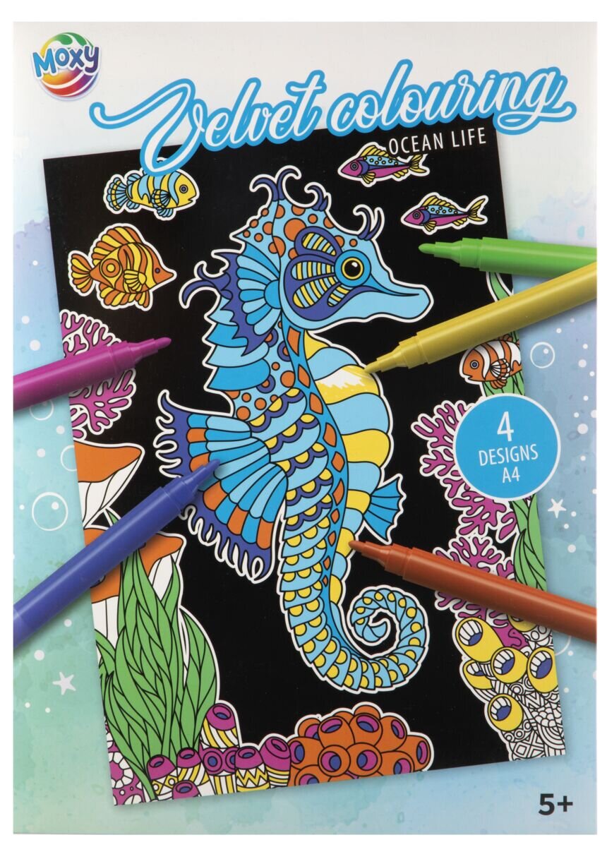 Osahuje 4 sametové předlohy A4 k vymalování fixy.Fixy nejsou součástí balení.Velikost balení: 22 x 30 cmVhodné od 5 let.Nevhodné pro děti do 3 let. przeczytaj całość