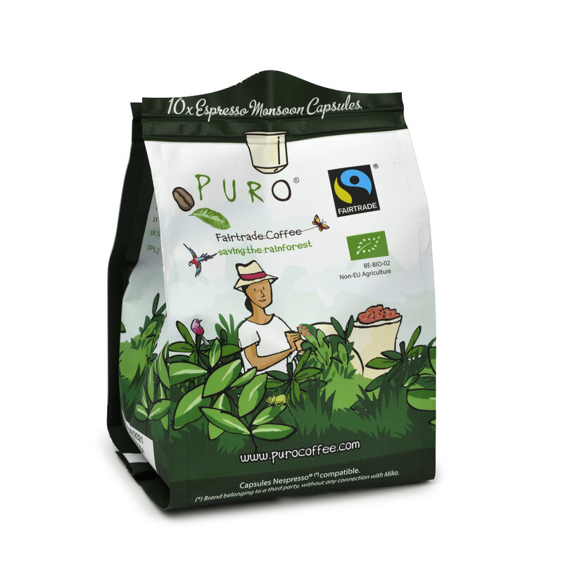 Mamy na uwadze zrównoważony rozwój, jeśli chodzi o nasze nowe przemysłowo kompostowalne kapsułki kawowe PURO. Są kontrolowane i certyfikowane przez Vincotte. Dużym problemem kapsułek jest odpad - około 4000 ton odpadów (źródło: welt.de), które są produkowane rocznie. Dzięki naszym kapsułkom PURO chcemy coś z tym problemem zrobić. Nasze przemysłowo kompostowalne kapsułki rozpoznasz po symbolu „kapsułka - symbol rośliny”. Przy okazji, z każdą filiżanką kawy PURO wspierasz nasze działania na rzecz ochrony lasów deszczowych, we współpracy z naszym partnerem „World Land Trust”.