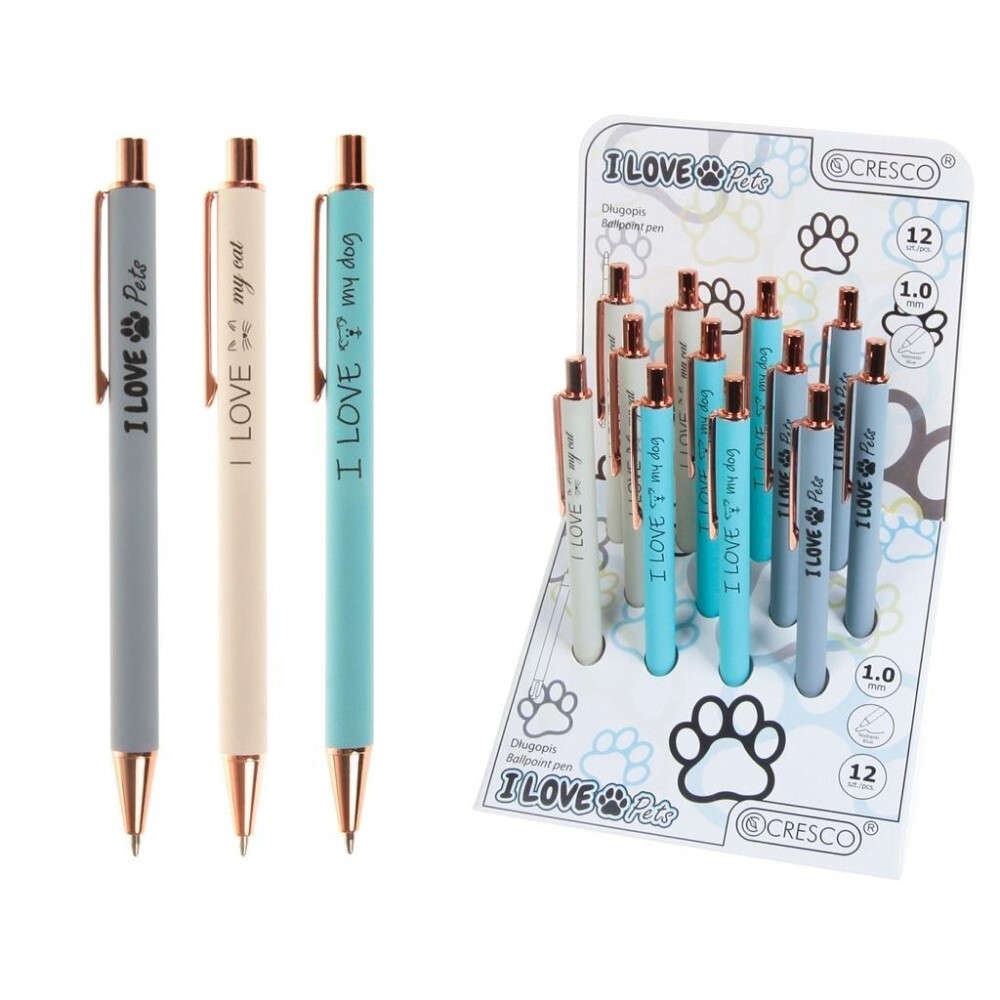 Długopis kulkowy z plastikowym korpusem przyjemnym w dotyku z serii "I Love Pets".