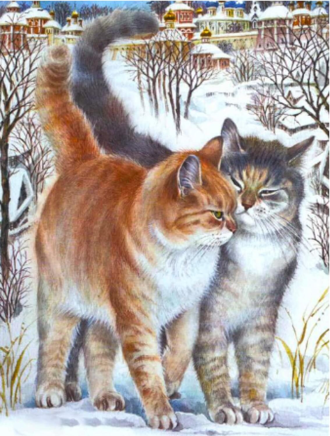 Diamantové malování Dvě kočky v zimě 30 x 40 cm