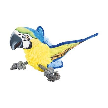Ara Ararauna papoušek na laně 35 cm, robustní hračka pro psy HIPHOP DOG, žlutá/modá