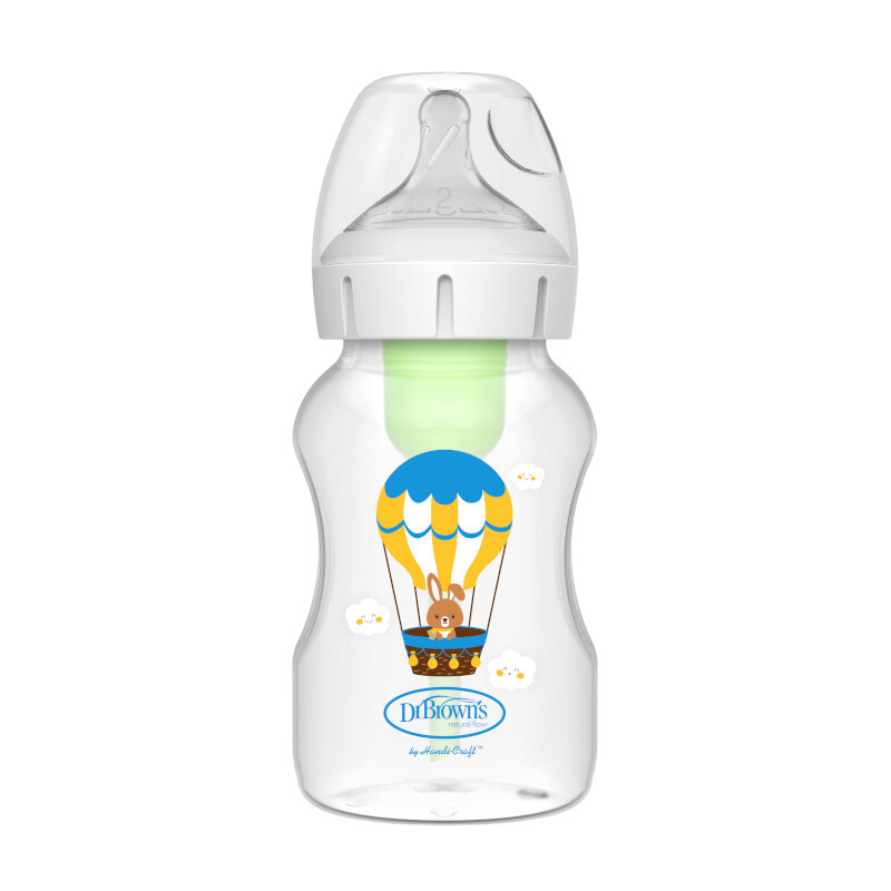 Dr.Browns WB111002 Butelka szeroka szyjka 330ml OPTIONS + smoczek +3M, dekor. Królik z balonami