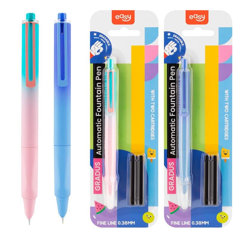 EASY GRADUS Automatické gumovací plnící pero s bombičkami, 0,38 mm, 12 ks v balení, modré-růžové
