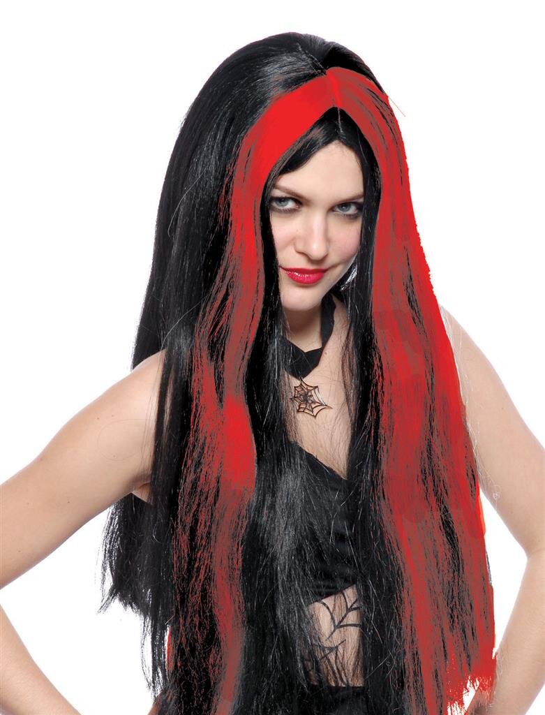 Černá paruka s červenými pramínky, ideální ke kostýmu čarodějnice.Barva: ČernáHmotnost: 0,288 Kg przeczytaj całość
