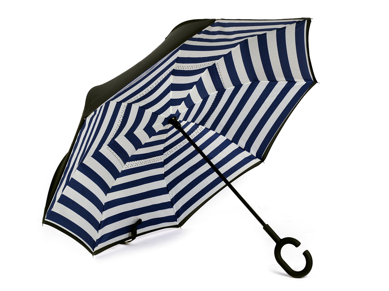 Obrácený deštník s barevným vnitřním potahem má revoluční řešení konstrukce. Díky opačnému otevírání a zavírání deštníku směrem vzhůru voda zůstane schovaná uvnitř v deštníku. Je to veliká výhoda např. když usedáte do automobilu, voda na vás již při zavírání nesteče, ale zůstane v deštníku. Jistě...
