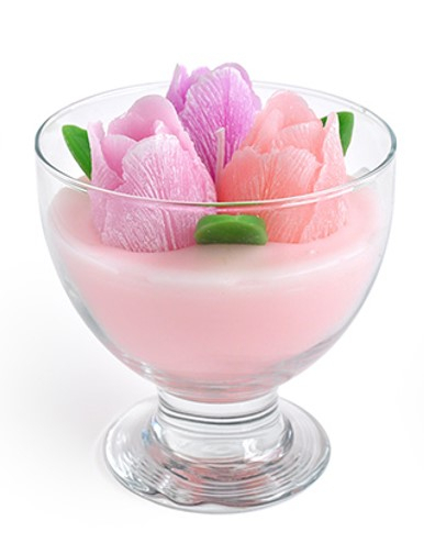 Świeca w pucharku TULIPANY woskowa 11x14cm różowa