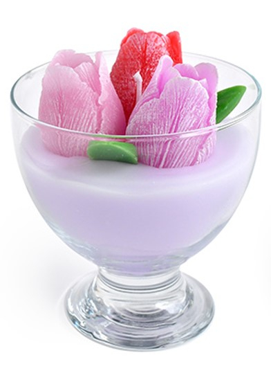 Świeca w pucharku TULIPANY woskowa 11x14cm liliowa