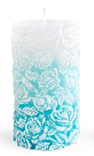 Świeca walec duży 8x18,5cm RÓŻANA turkusowa parafinowa