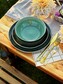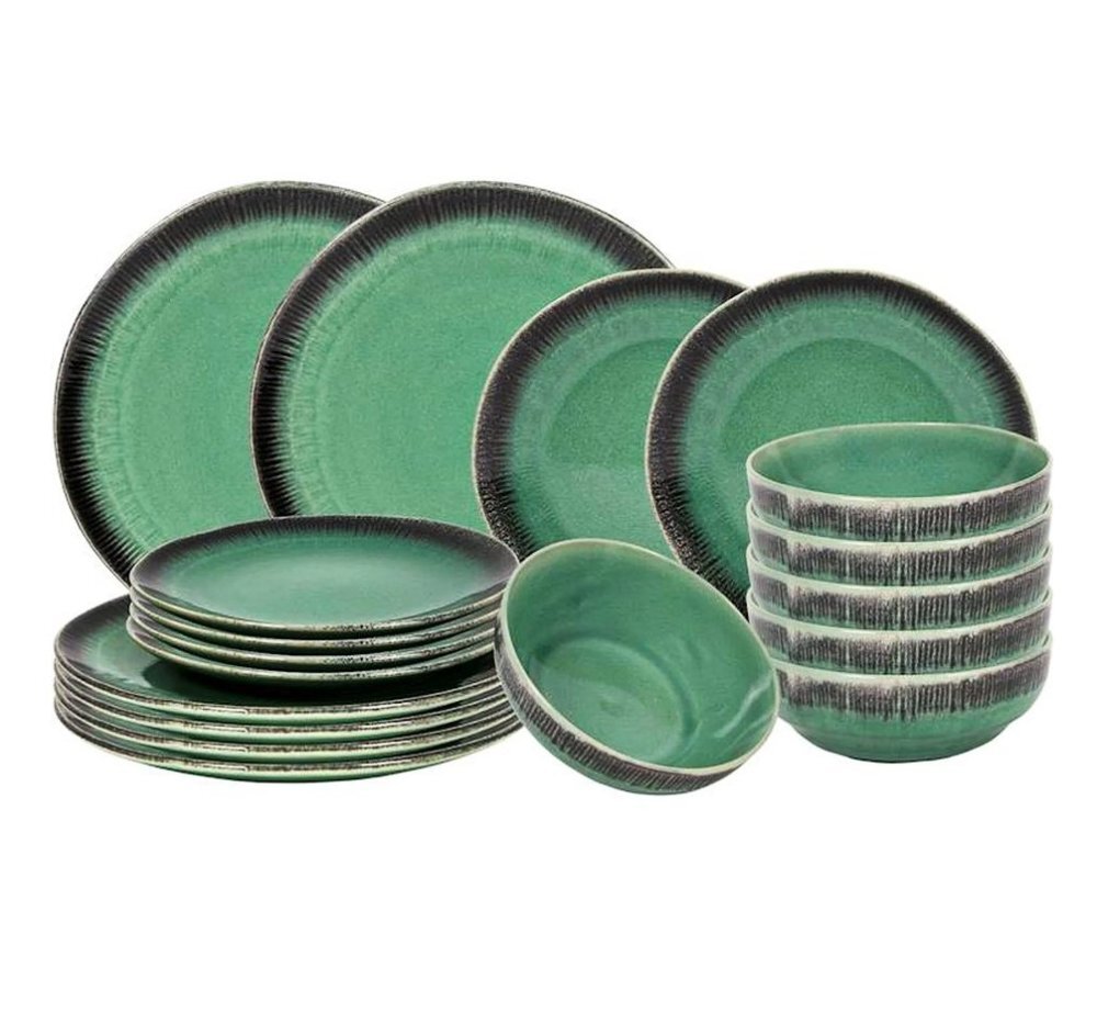 Zestaw talerzy z kamionki - 18-częściowy komplet naczyń w zielonym kolorze