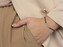 Bransoletka jest zapakowana na ozdobnej karcie w przezroczystym woreczku.
