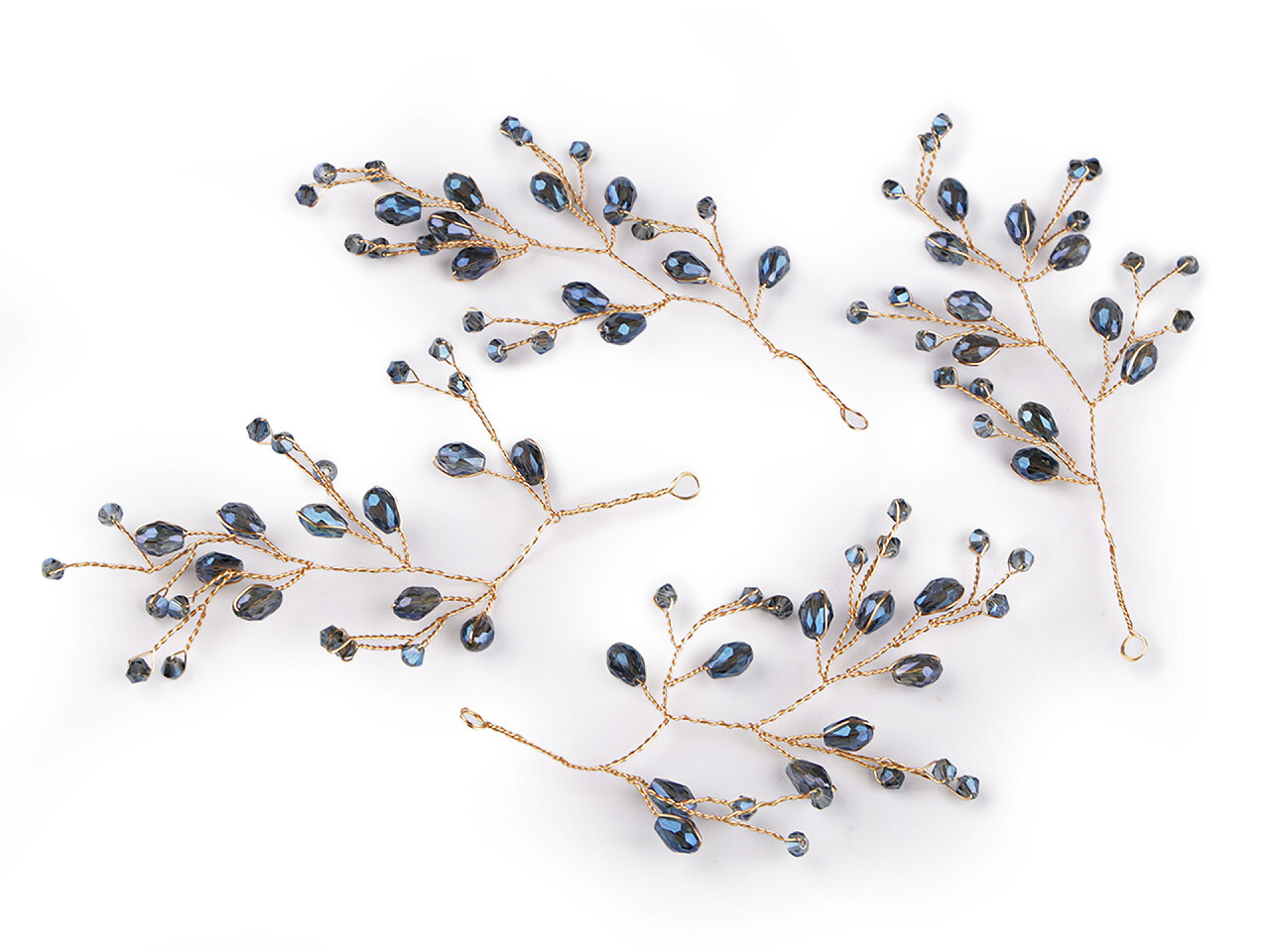 Větvička drátěná s broušenými korálky hand made - 4 ks - 5 modrá zlatá