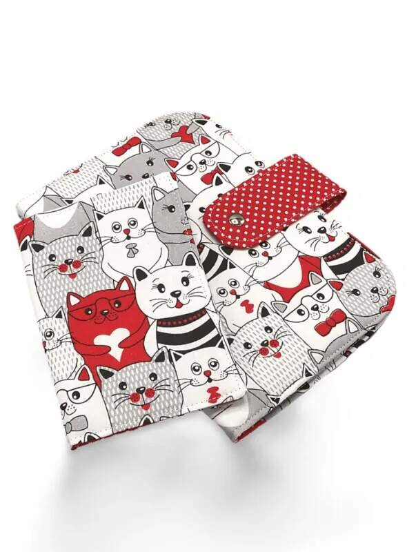 Sada plenkovníku / pouzdra na pleny a obalu na očkovací a zdravotní průkaz dítěte - Červené kočky v kině