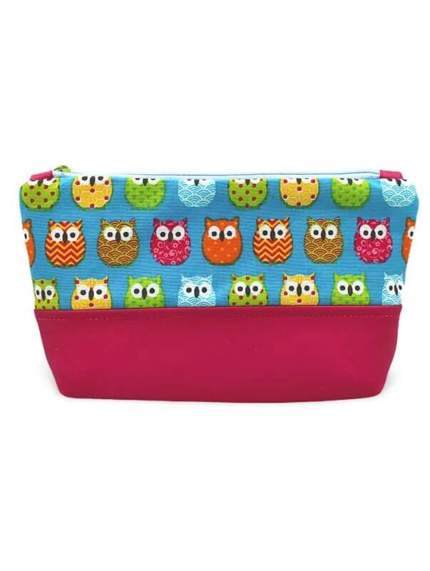 Kosmetická taštička z kombinace ekokůže a bavlny - Modré sovy