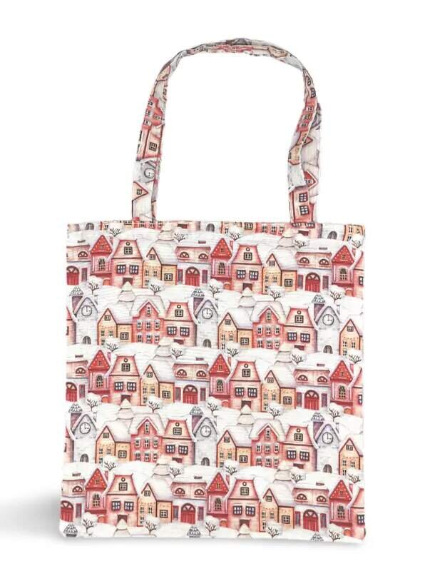 Bavlněná nákupní taška s delším popruhem na rameno - Vánoční domečky