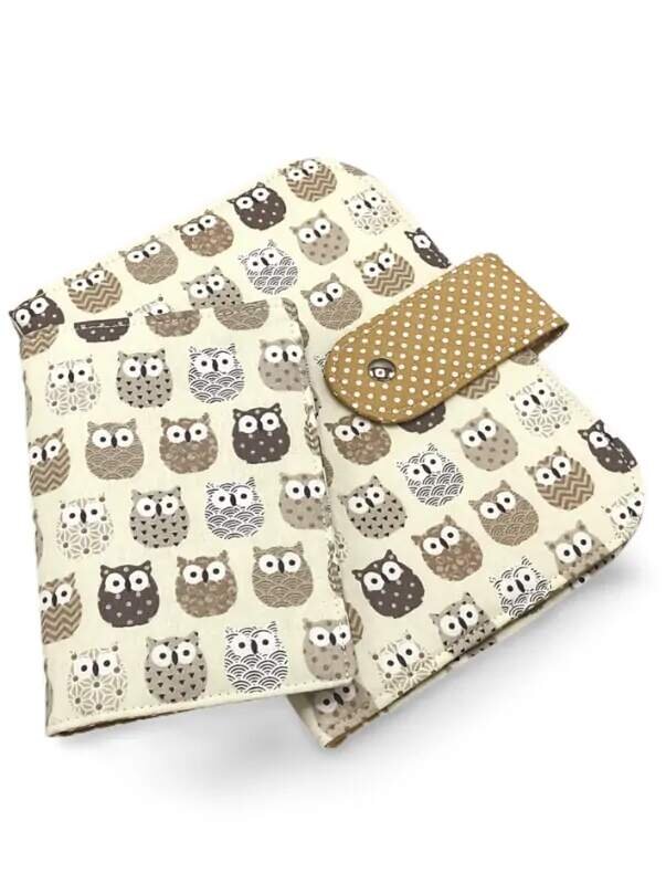 Sada plenkovníku / pouzdra na pleny a obalu na očkovací a zdravotní průkaz dítěte - Béžové sovy