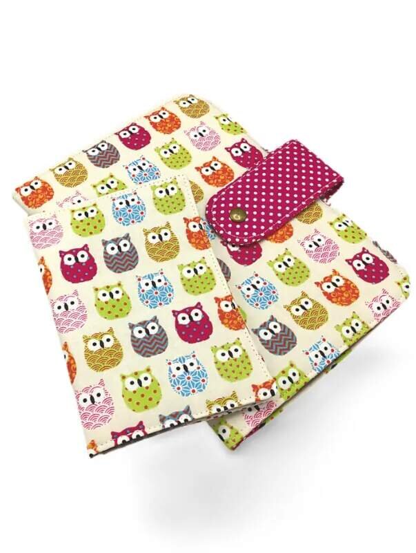 Sada plenkovníku / pouzdra na pleny a obalu na očkovací a zdravotní průkaz dítěte - Růžové sovy